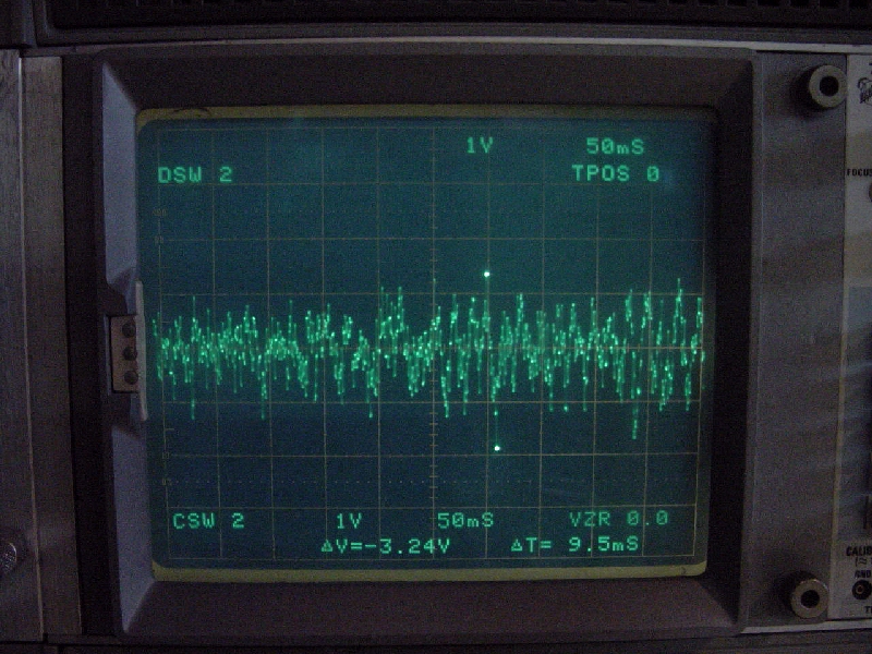 This is a sample of what the white noise output signal looks like. The screen was captured on a Tektronix 7D20 digitizer. The PP1 was designed using top shelf test gear from Tektronix and Hewlett Packard. No detail was taken for granted in order that I would be able to provide you with the highest reliability product at a price that compares with cheap imports. I know you'll be pleased with the construction, performance, and ease of installation of the PP1 phono input preamp module. The hard work was done ahead of time so that you wouldn't have to do it. Simply mount the circuit, connect to your power supply, add tubes, then use the time you've saved to enjoy your music! |